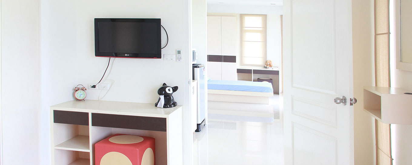 Salaya International House is a brand new set of condominium-type apartments located within a kilometer from Mahidol University. This modern-style living complex was articulately built with the primary needs of students and instructors as the main objectives. The design is the state-of-art with each piece specifically chosen to match standard hotel quality. The room rent rates are priced competitively to suit the market and cater to student's budget. The staff is well-trained to provide the best service to the tenants to ensure a comfortable and hassle-free stay. The rooms are fully furnished and equipped with the necessary gadgets that make an acedemic life easy-going such as internet WIFI, LCD TV, Fridge, Microwave, Hot Water Bath... which are all provided for free (including ample Car Parking space).
